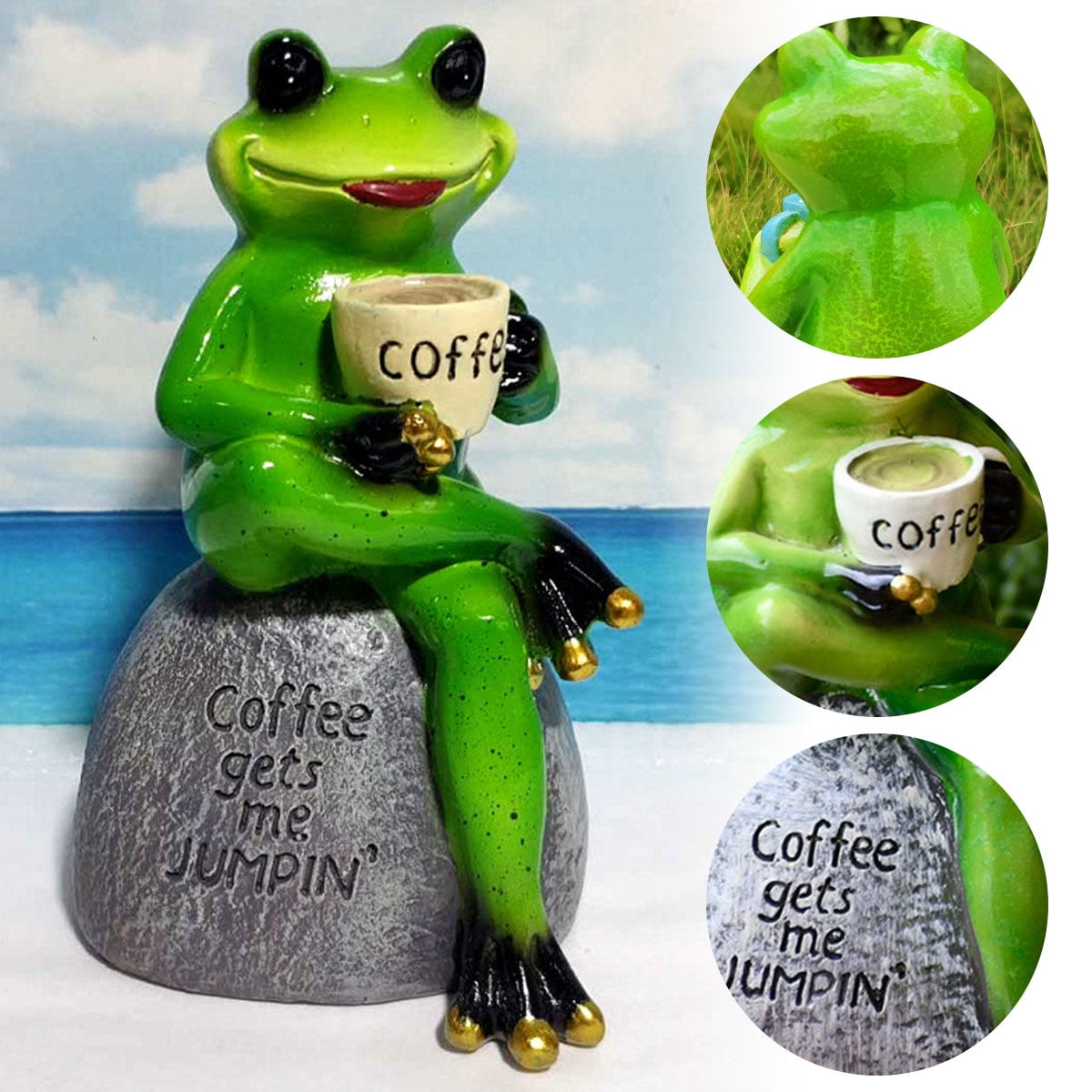 Yous Auto Resin Garden Statue Frog Figurines Sitting On Stone Statue Cute Creative Green Frog Sculpture Funny Drinking Coffee Frog Ornaments For Indoor And Outdoor Decoration Walmart Com